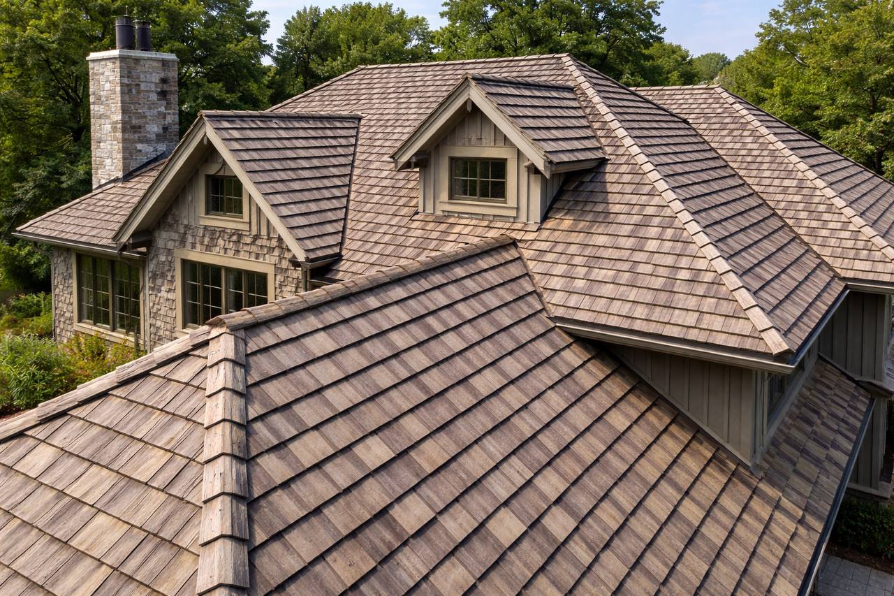 Want metal performance without the standing seam look? Metal shingles give you the best of both worlds—50+ year lifespan, Class A fire rating, impact resistance—but they look like high-end architectural shingles.